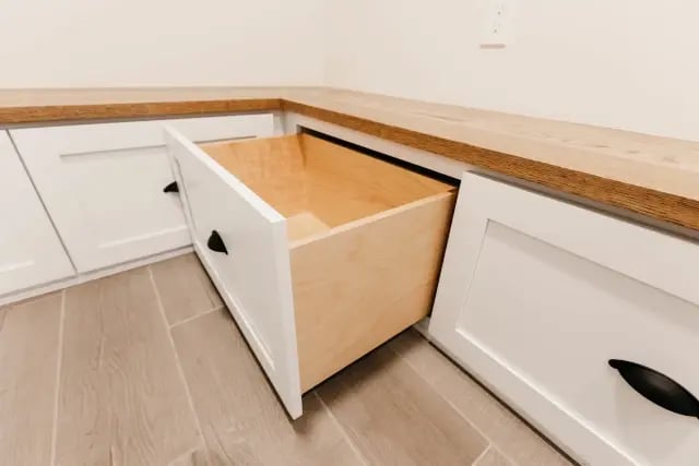 In high-traffic spaces like mudroom cabinets and entryways, a storage bench must be durable. Materials that resist water, like treated wood or vinyl upholstery, protect floor hygiene, particularly in damp locations.
